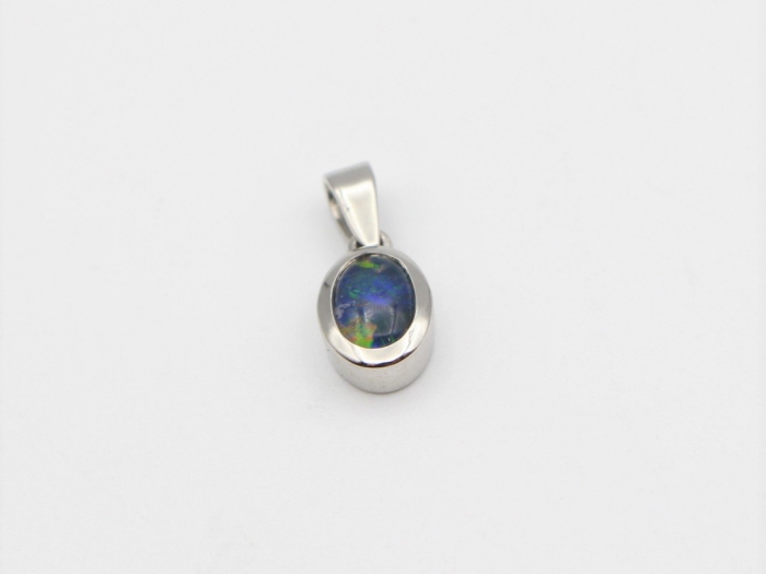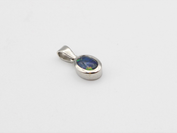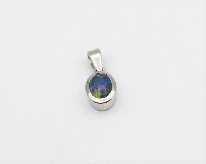 14 karaat wit gouden hanger gezet met een ovaal geslepen Opaal edelsteen.