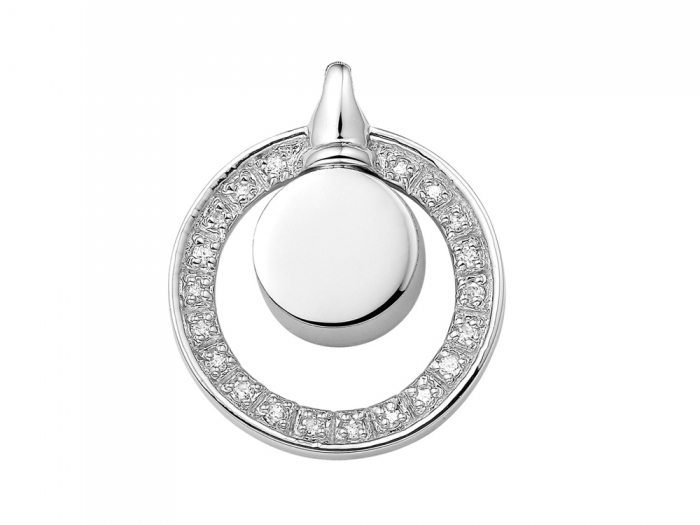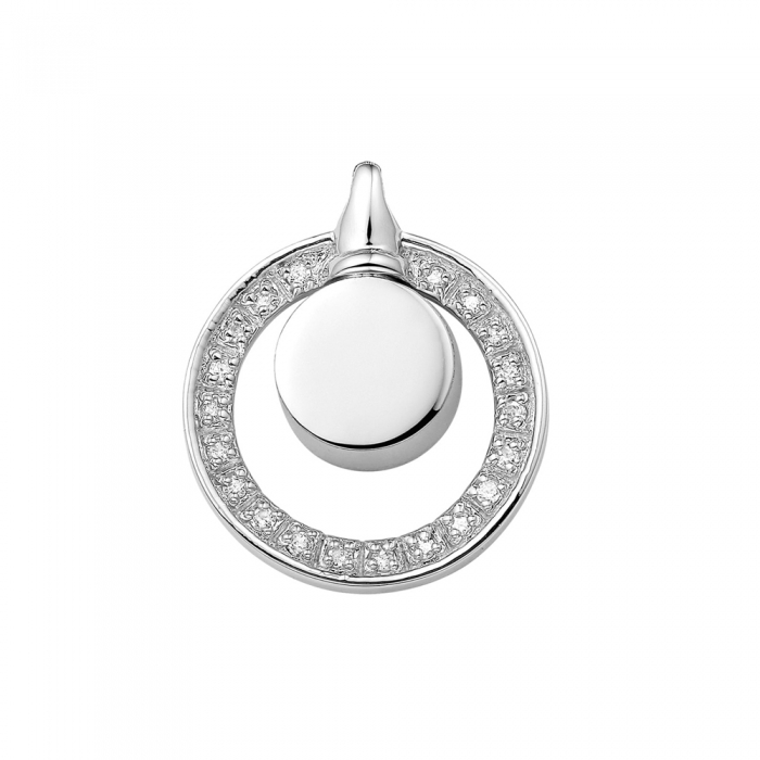 Zilveren hanger met zirkonia rand. De as is bij deze hanger niet zichtbaar. Door de schroef aan de achterkant te verwijderen kan het sieraad d.m.v een trechter met as gevuld worden.