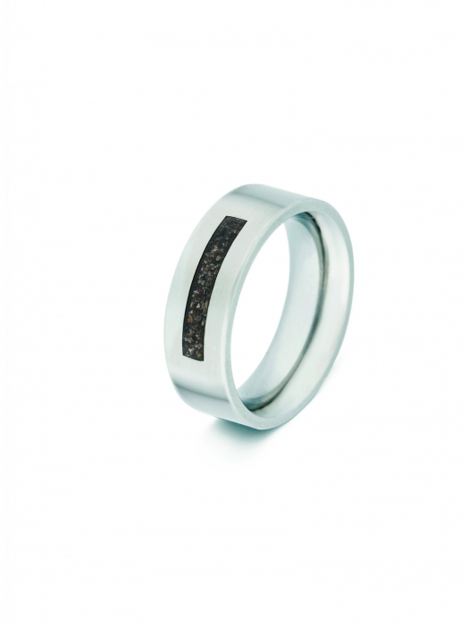 Zilveren heren ring gedenksieraad. Dit sieraad wordt zichtbaar aan de voorkant gevuld met as en wordt vermengd met onze speciale hars.