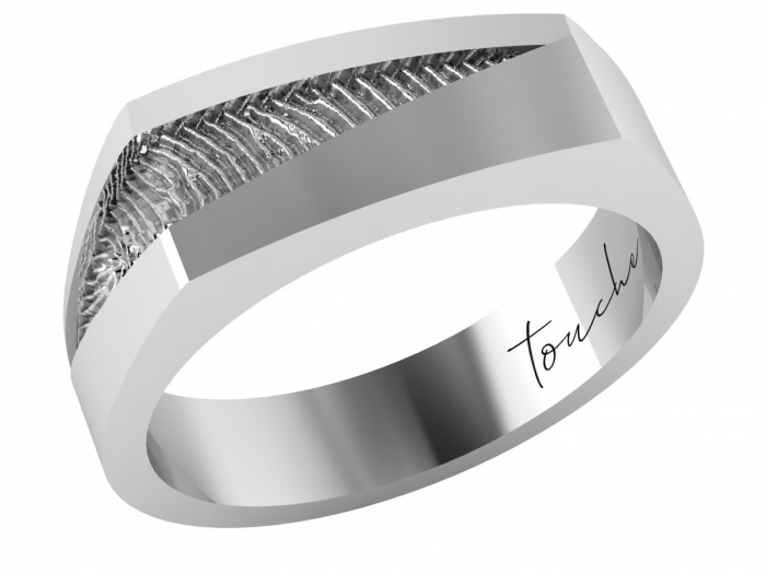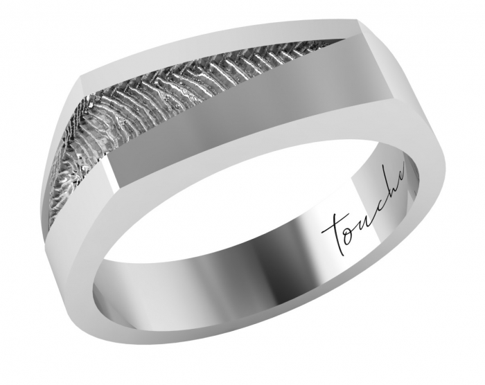 Zilveren heren ring met vingerafdruk. modern ontwerp.