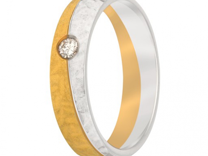 14 karaat geel met wit gouden dames trouwring met diamant. 1 x 0.07ct briljant geslepen diamant.