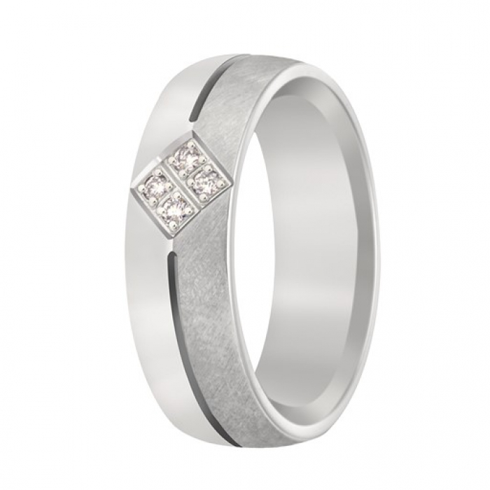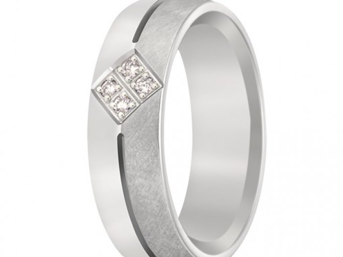 14 karaat geel met wit gouden dames trouwring met diamant. 4 x 0.015ct briljant geslepen diamant.