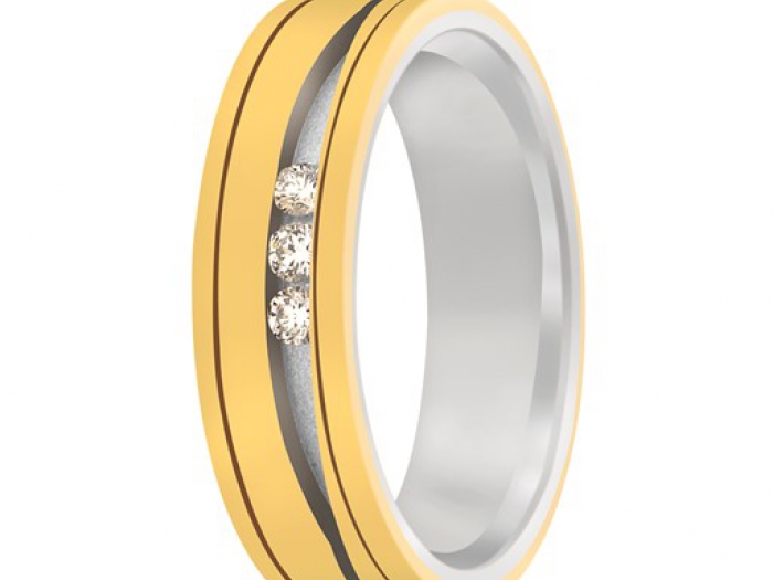 14 karaat geel met wit gouden dames trouwring met diamant.