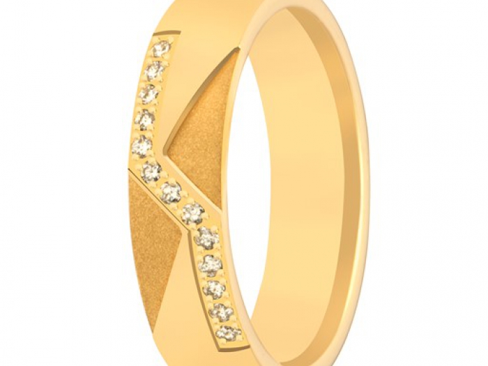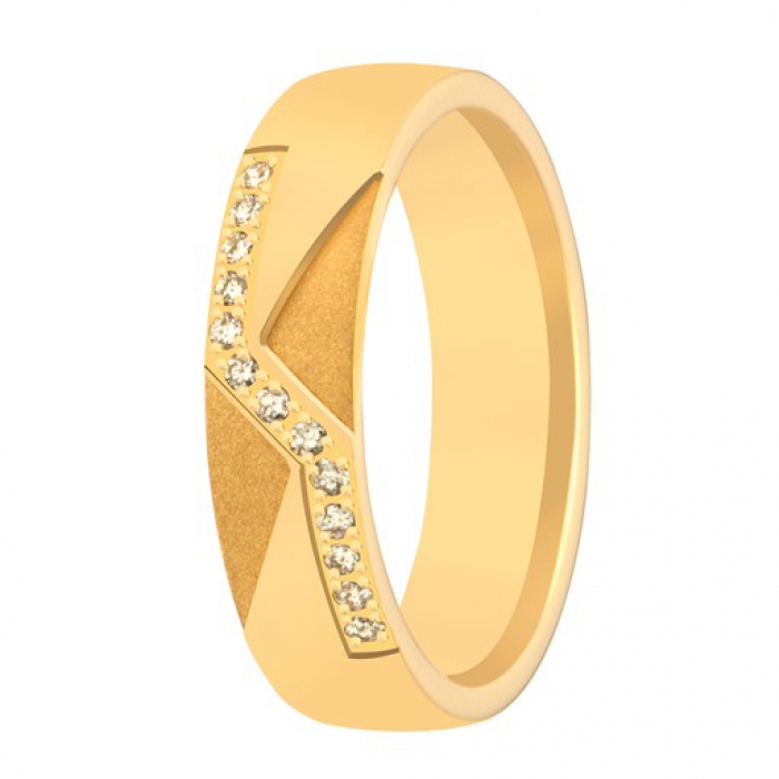 14 karaat geel met wit gouden dames trouwring met diamant. 13 x 0.01ct briljant geslepen diamant.
