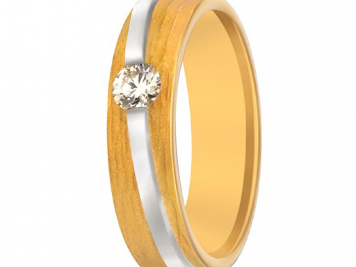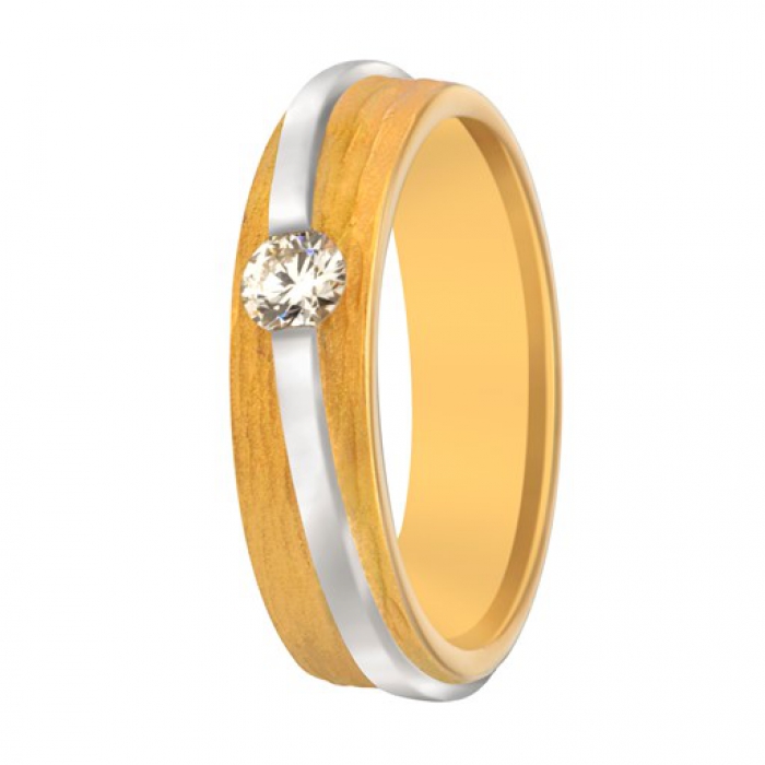 14 karaat geel met wit gouden dames trouwring met diamant. 1 x 0.20ct briljant geslepen diamant.