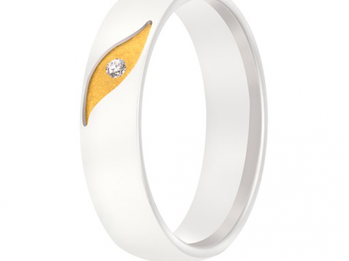 14 karaat geel met wit gouden dames trouwring met diamant.